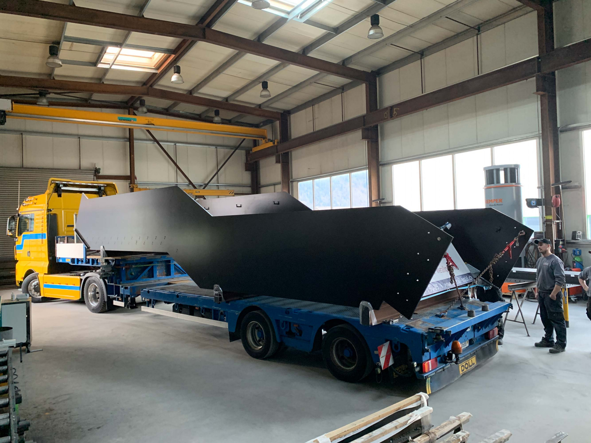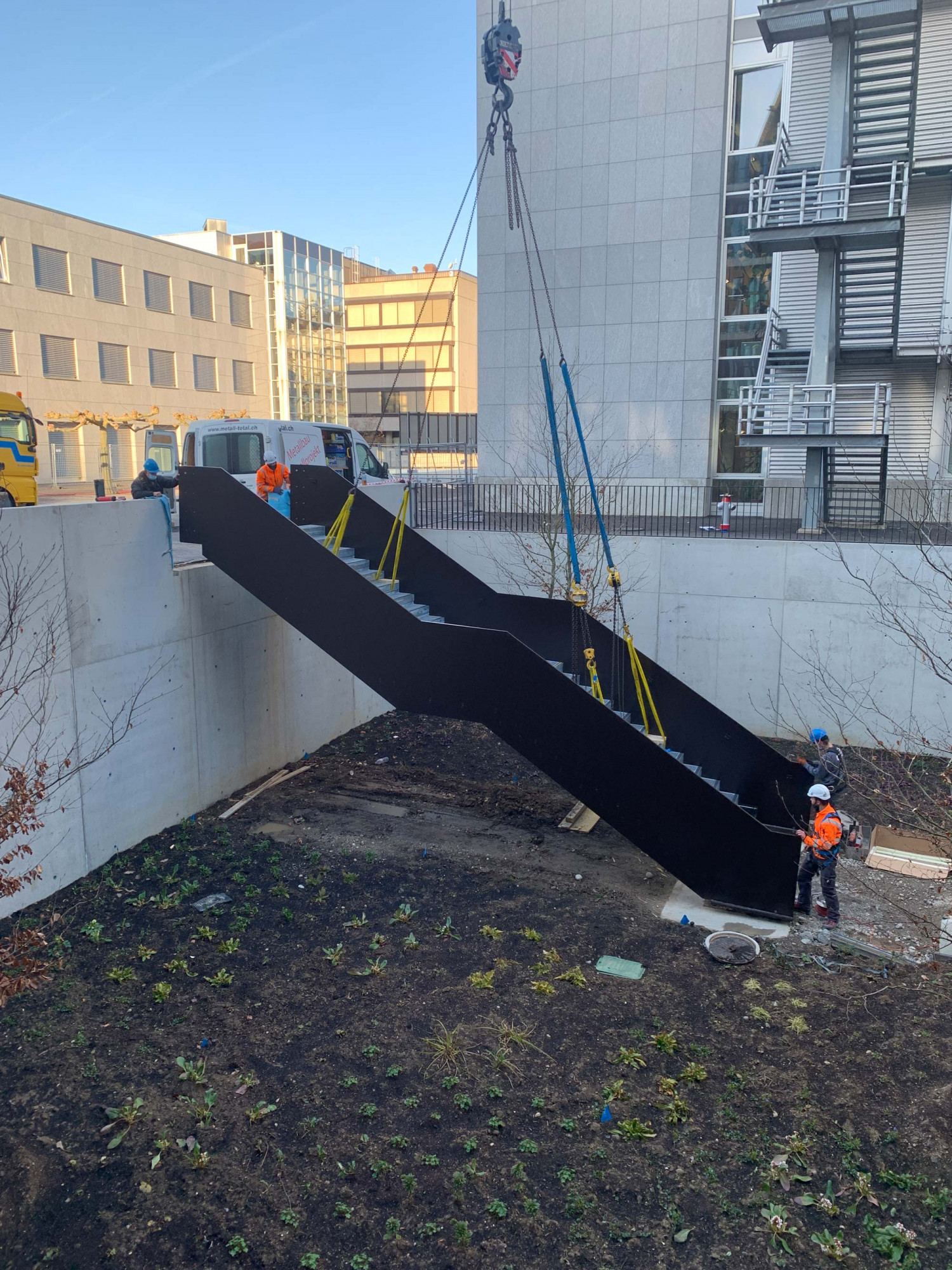 Treppe mit 25mm Treppenwangen und Spezialtritte.